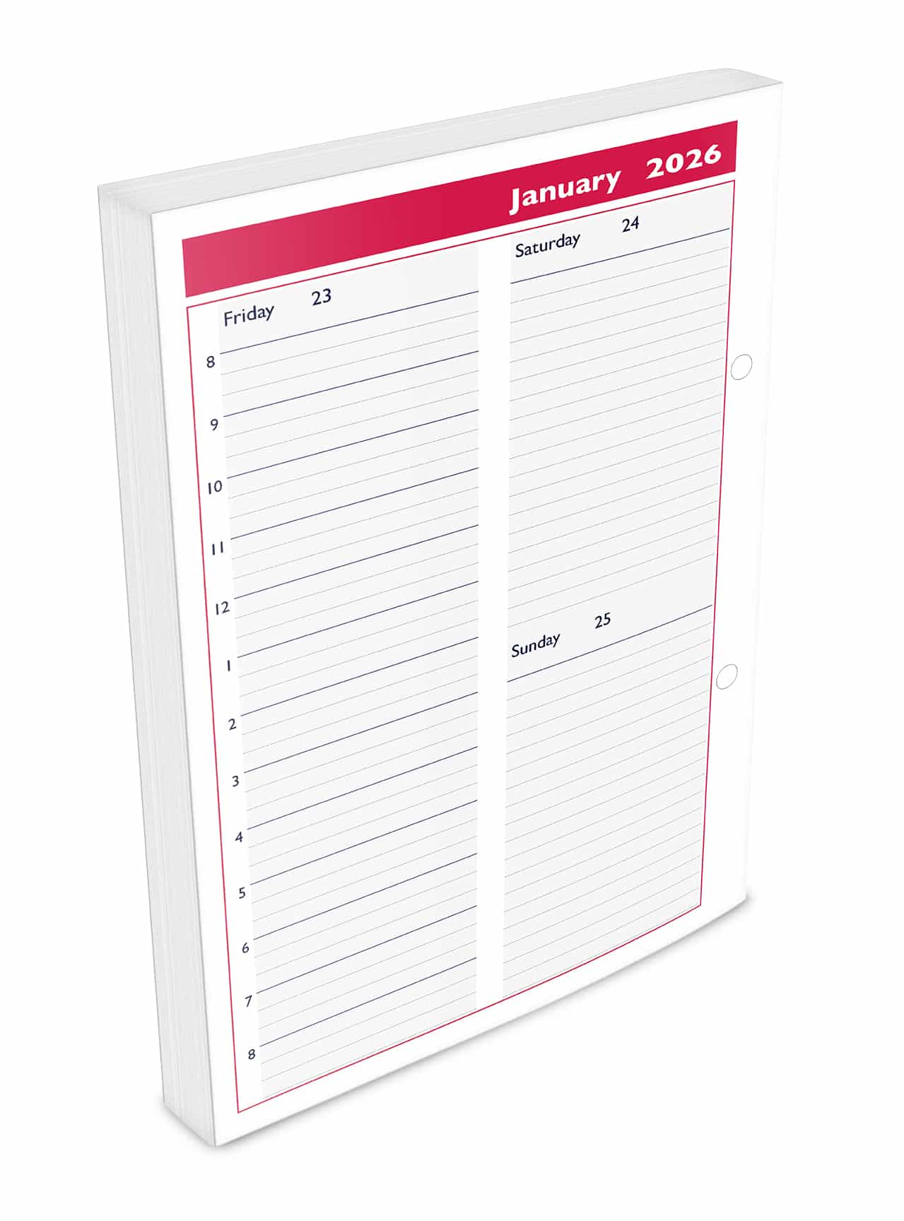 - Compact two days per page layout