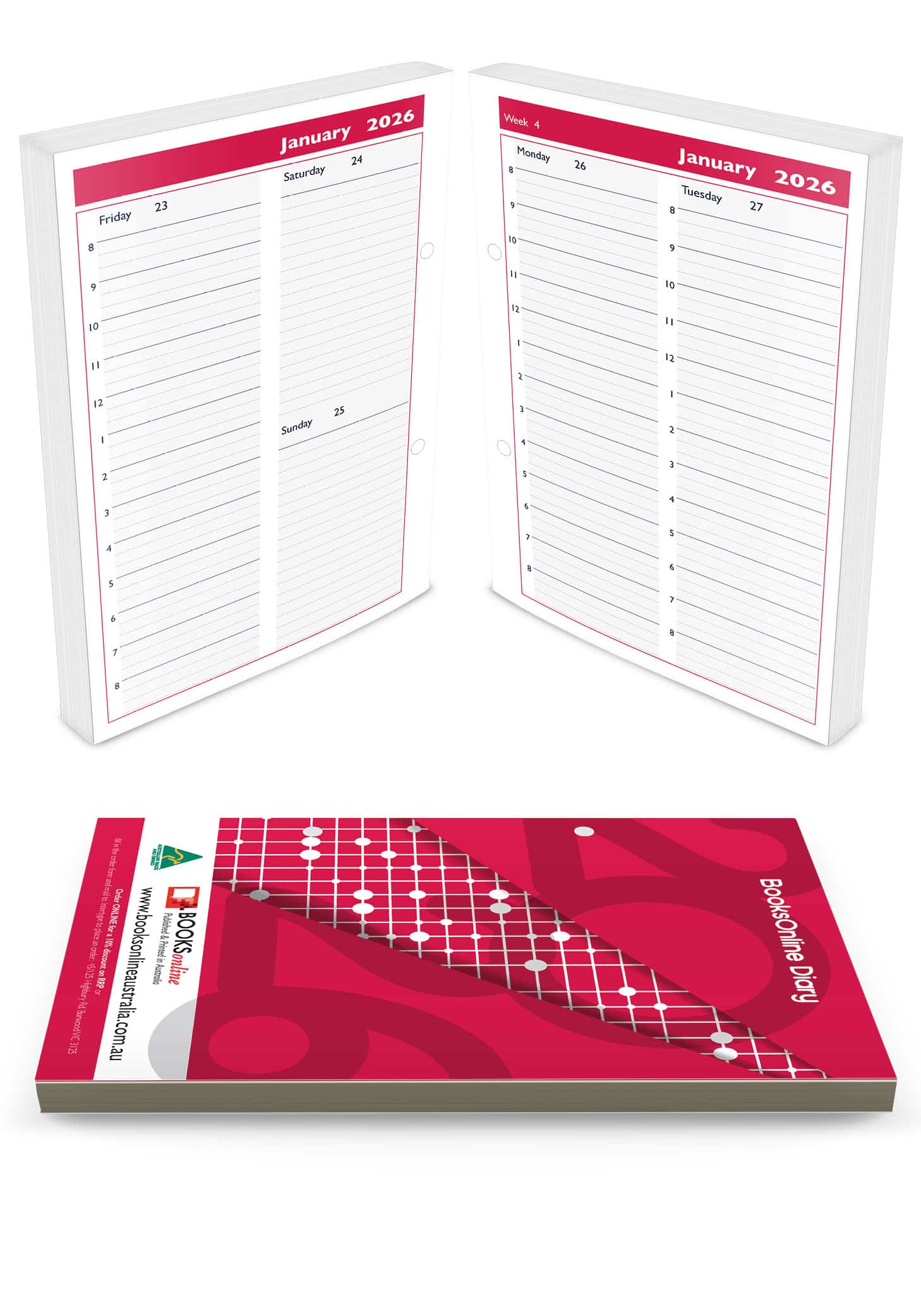 “Books Online Diary Refill” is always in stock. “Printed On Demand” in Australia by Intertype